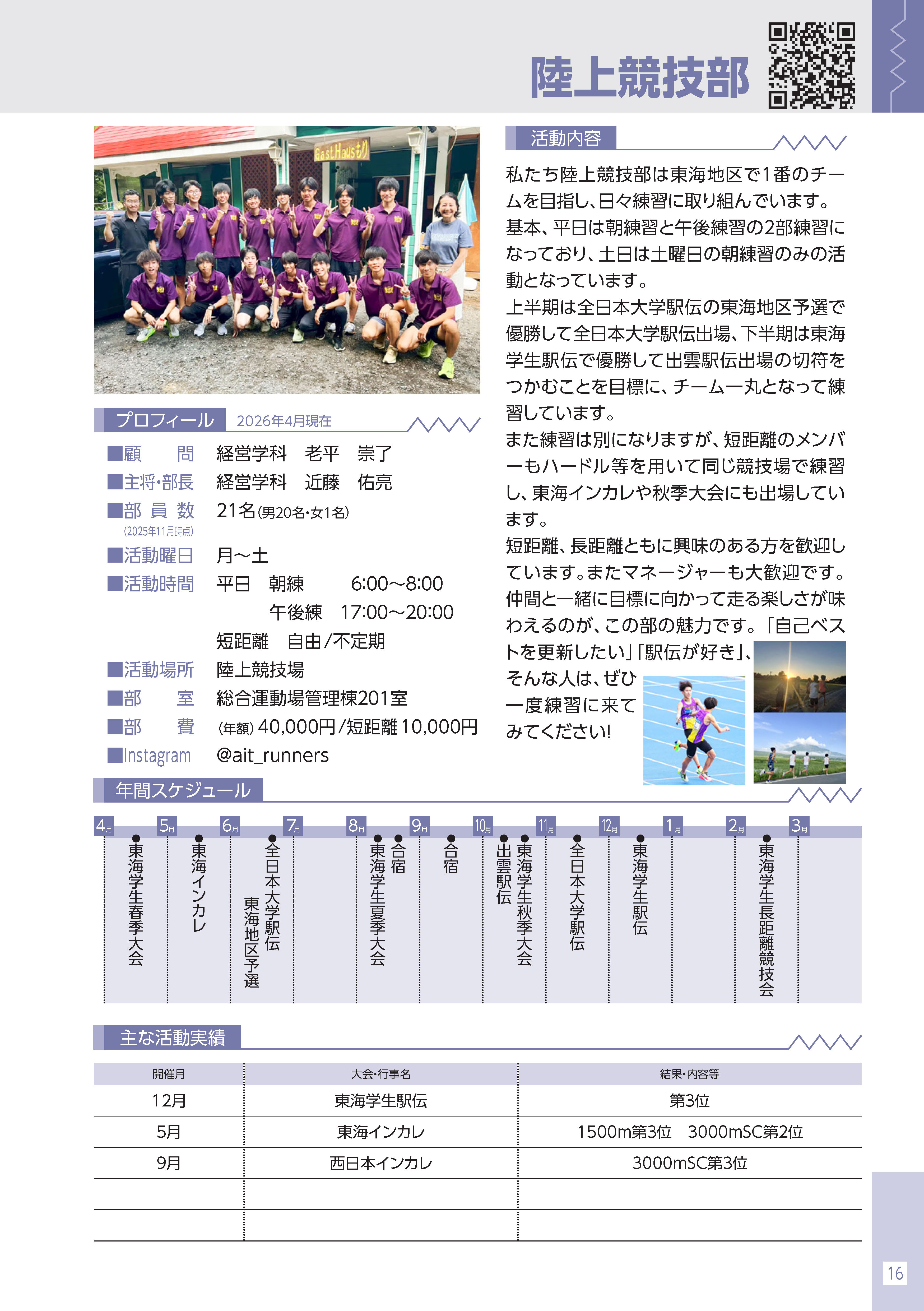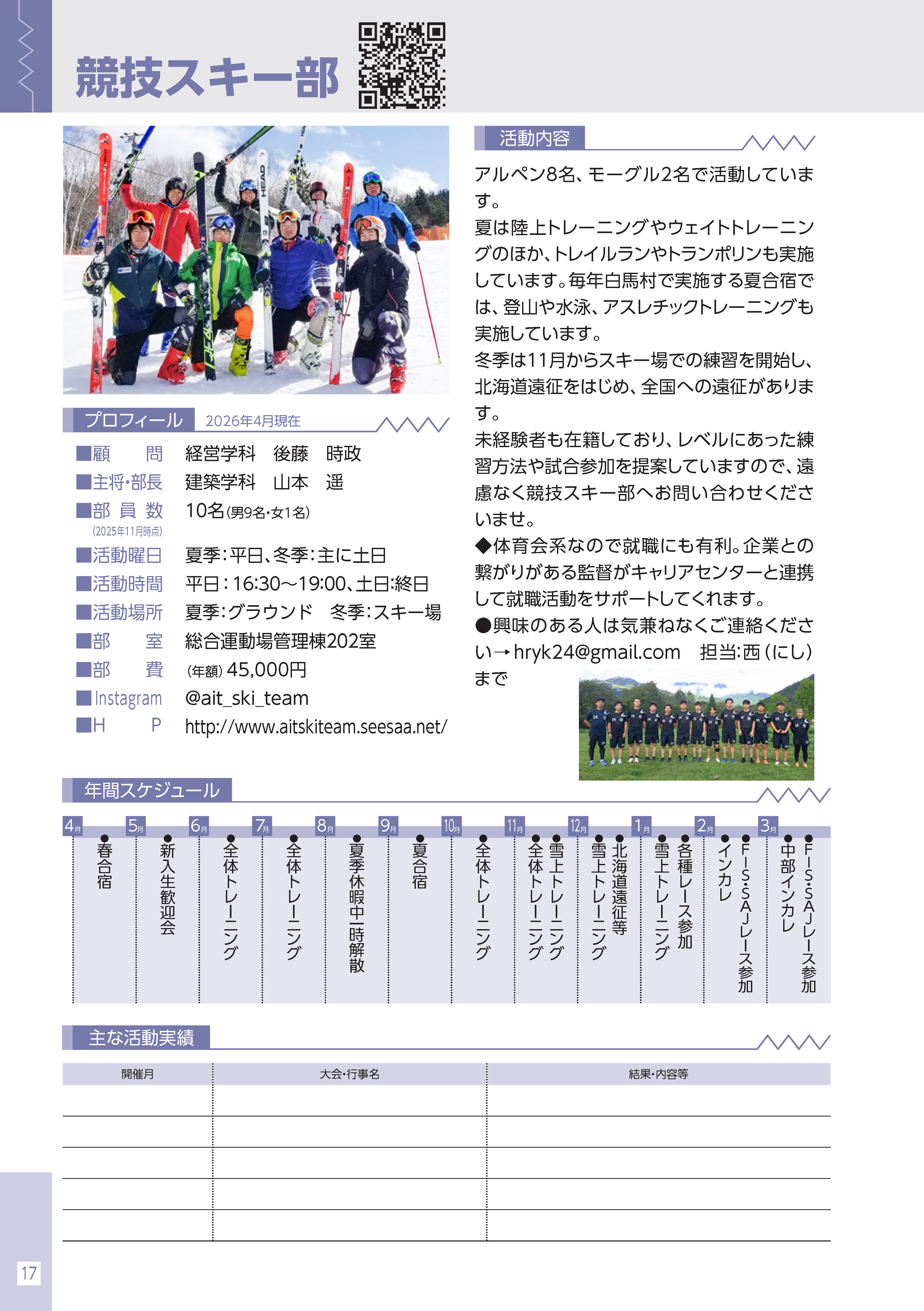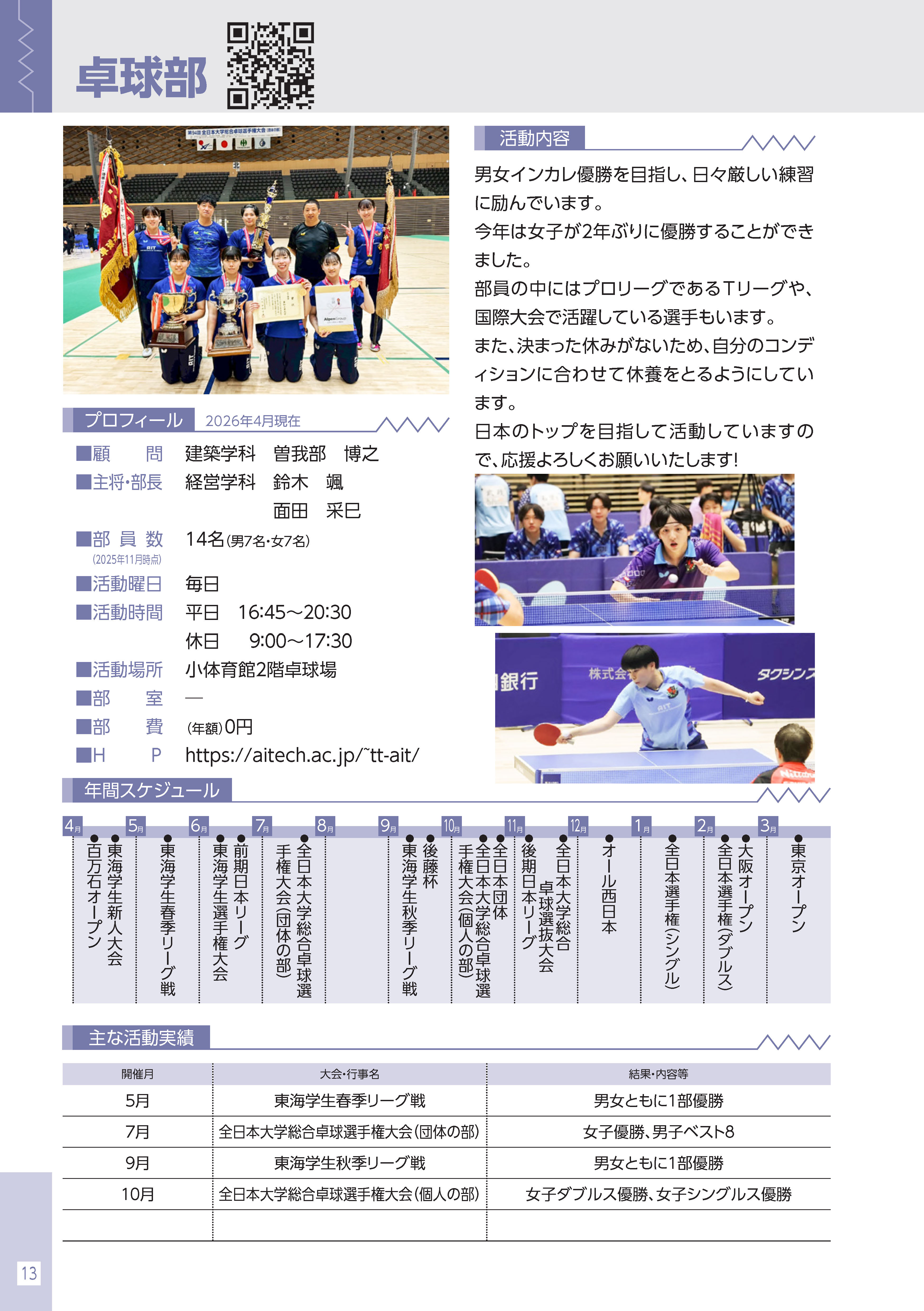 クラブ一覧 卓球部 硬式野球部 フェンシング部 陸上競技部 競技スキー部 ラグビー部 硬式テニス部 ゴルフ部 バスケットボール部 洋弓部 サッカー部 バドミントン部 ソフトテニス部 バレーボール部 準硬式野球部 ボウリング部 基礎スキー部 ヨット部 柔道部 剣道部 弓道部 卓球同好会 水泳部 社交ダンス部 航空部 サバイバルゲーム部 自転車部 スノーボード同好会 ソフトボール同好会 ダンスサークルPulse ハンドボールサークル 居合道部 スポジョイサークル SASUKE・オブスタクルスポーツサークル レーシングカート部 自動車部 二輪同好会