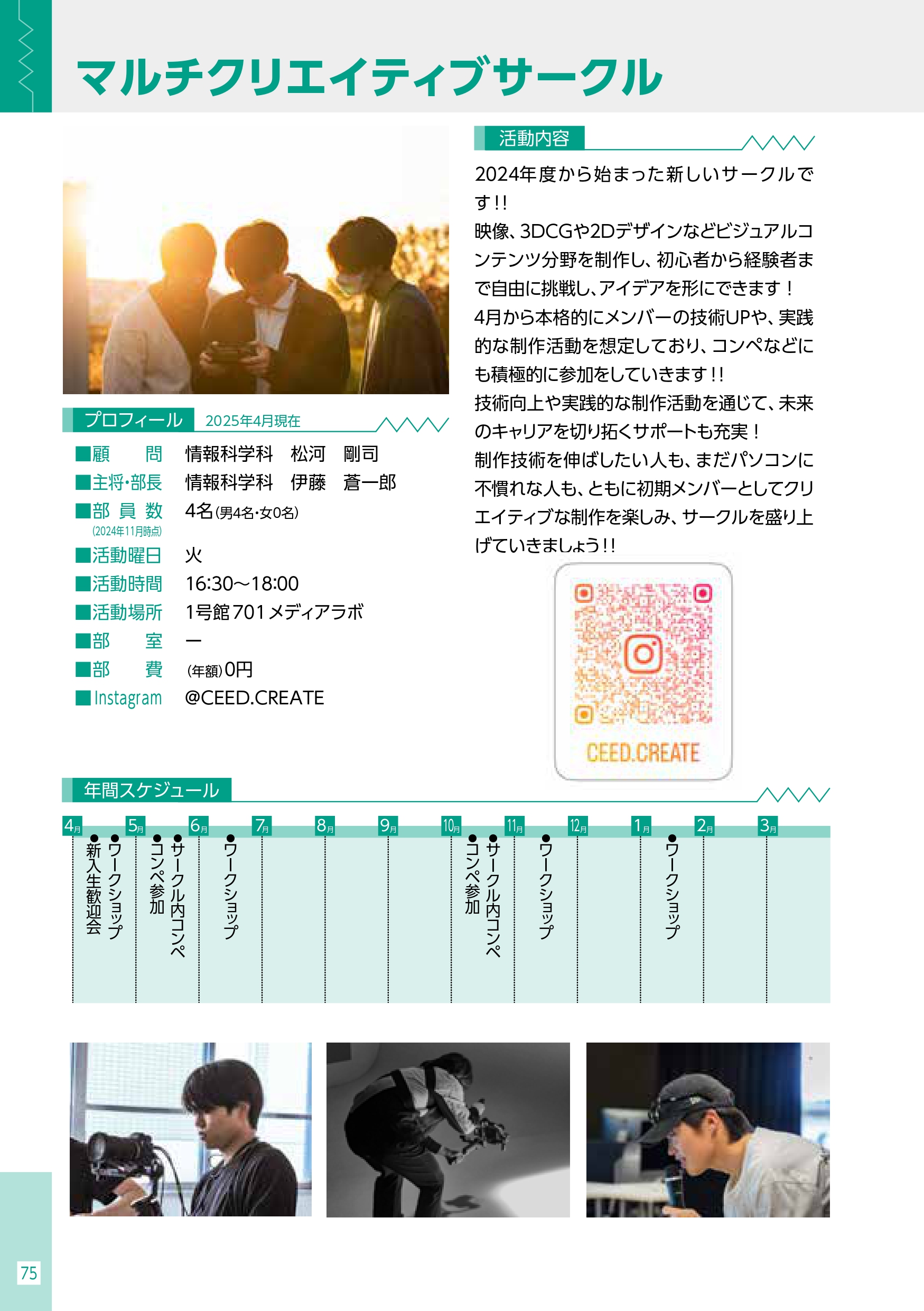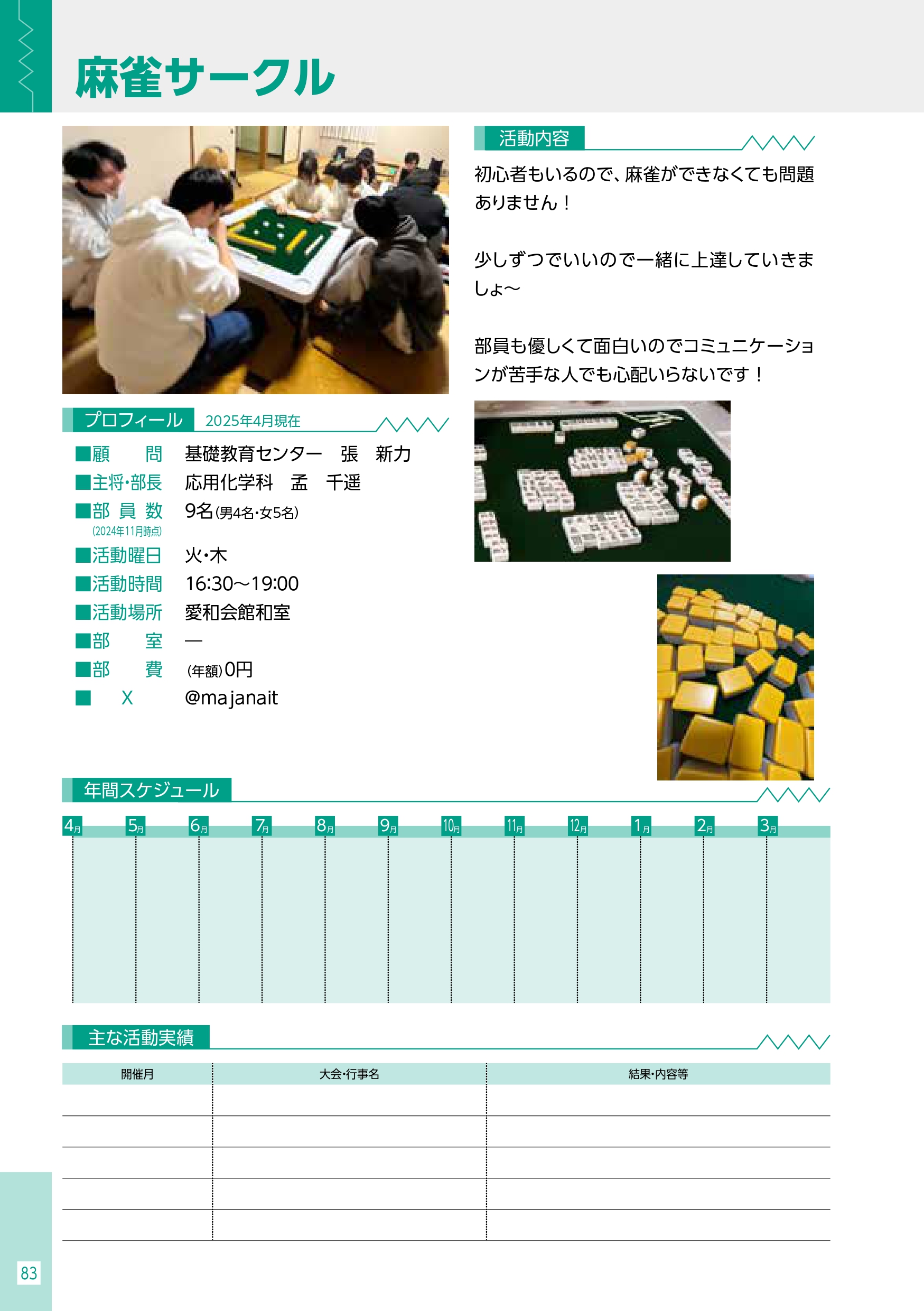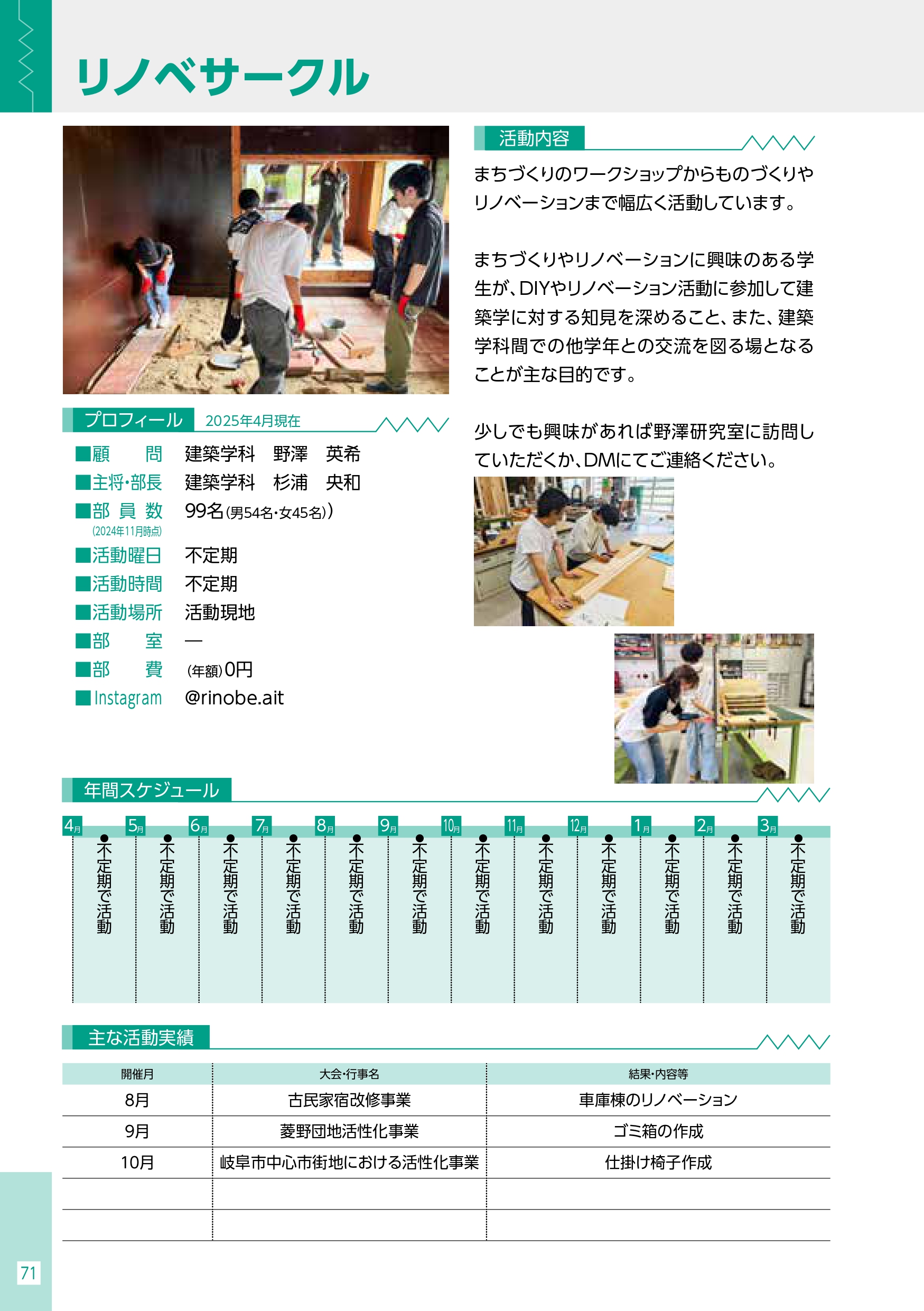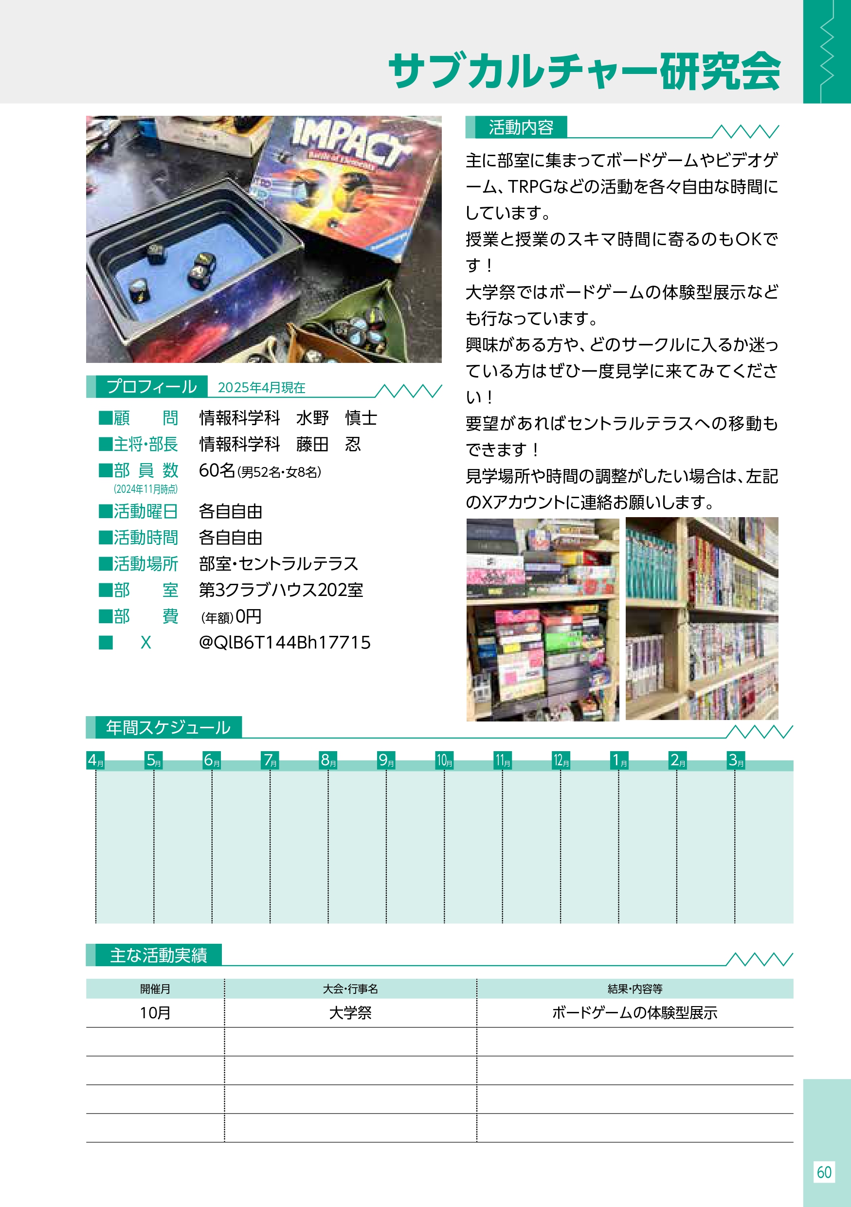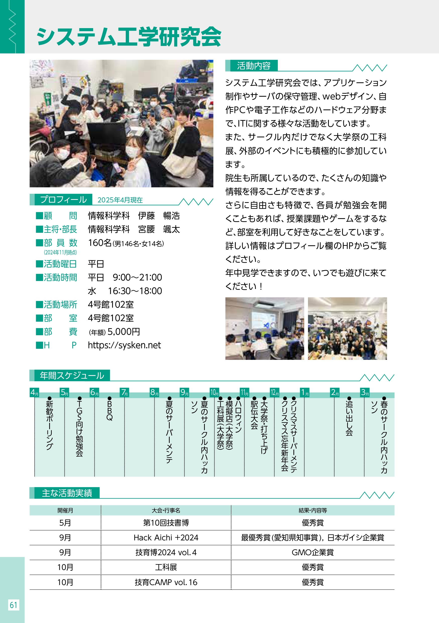 クラブ一覧 管弦楽団 ギター部 軽音楽部 フリーサウンドサークル DTM部 なんくるないさ~くる 競技バンド部 漫画動画研究会 現代視覚文化研究会 サブカルチャー研究会 システム工学研究会 土木研究会 レスキューロボット研究会 AIT学生フォーミュラ研究会 AITEP Robot-Art ASTRON AIT株式研究会 ~Beckoning Cat~ 飛行ロボット研究会 建築研究会 リノベサークル コンテンツクリエーションサークル CG制作部 SL 同好会 マルチクリエイティブサークル フィッシング部 写真研究部 囲碁・将棋部 鉄道研究部 創作サークル みらい工房物創りクラブ Cooking Community Circle「Hill's」 麻雀サークル 自由ヶ丘ボードゲームサークル e-Sports Community Circle ドローンサークル 自由ヶ丘サウナサークル SPREAT