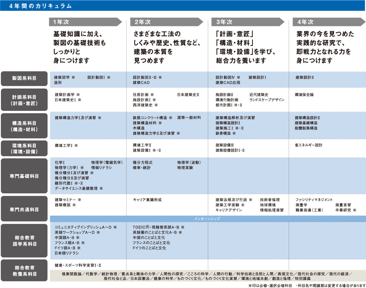 4年間のカリキュラム