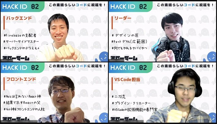 今回参加したHack Uでは4人でのチーム開発を行いました。それぞれが得意な分野を担当することで、非常に高い完成度で創り上げることができました。このチームだったからこそ最優秀賞とHappy Hacking賞の2冠を達成できたのだと思います。今後も今回の経験を活かして積極的に活動していきたいと思います。