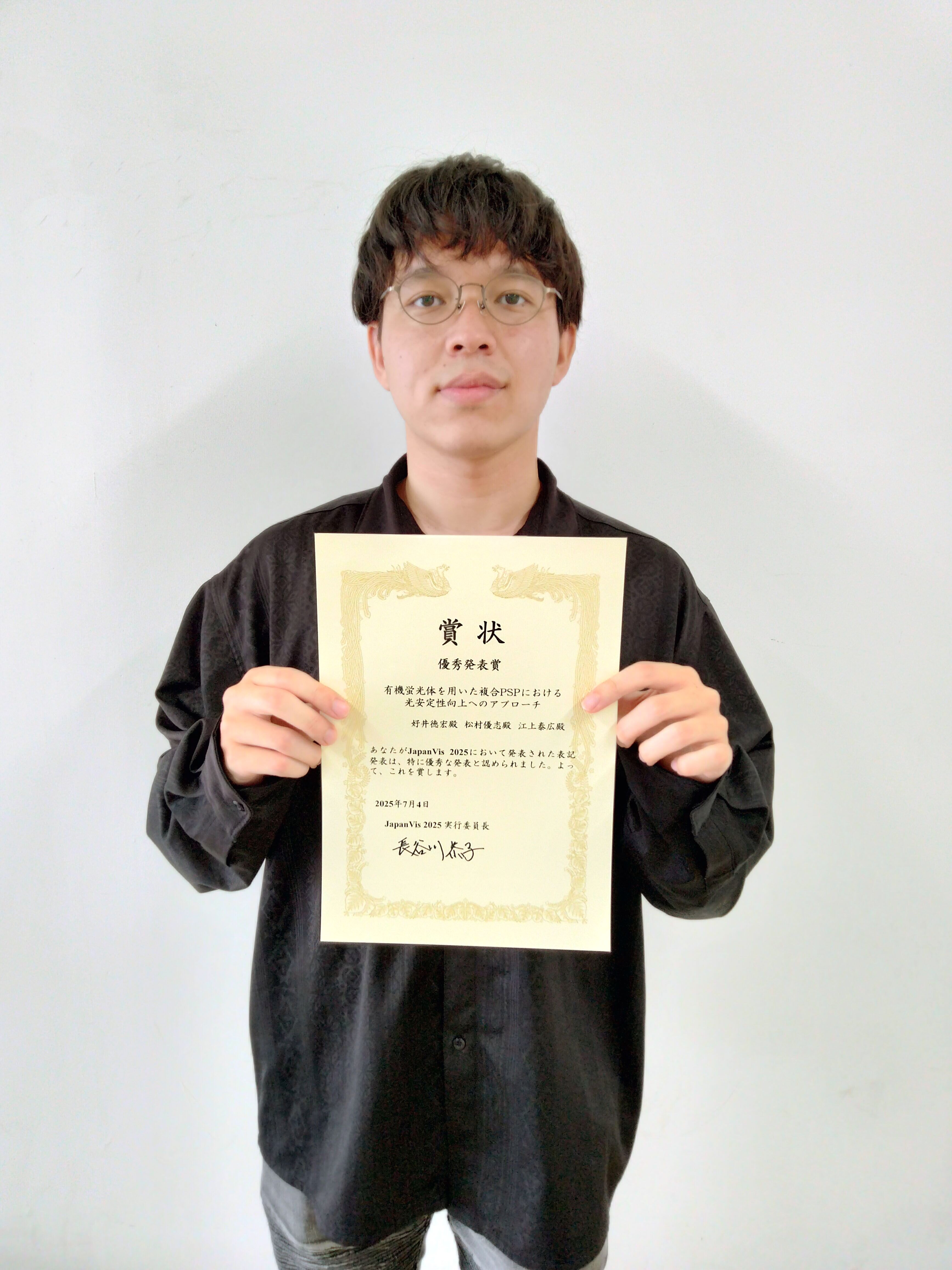 工学研究科の好井徳宏さんがJapanVis 2025で優秀発表賞を受賞