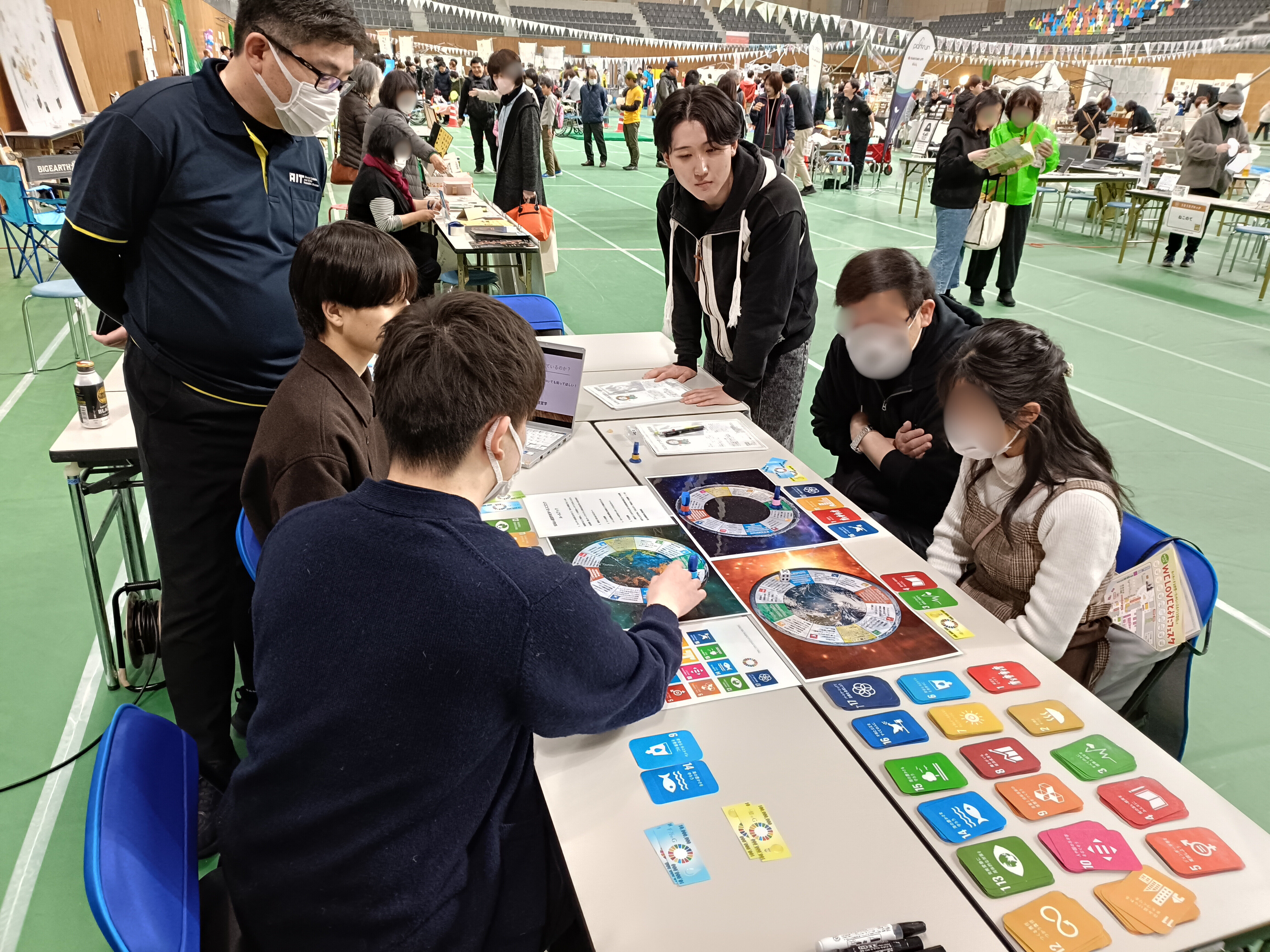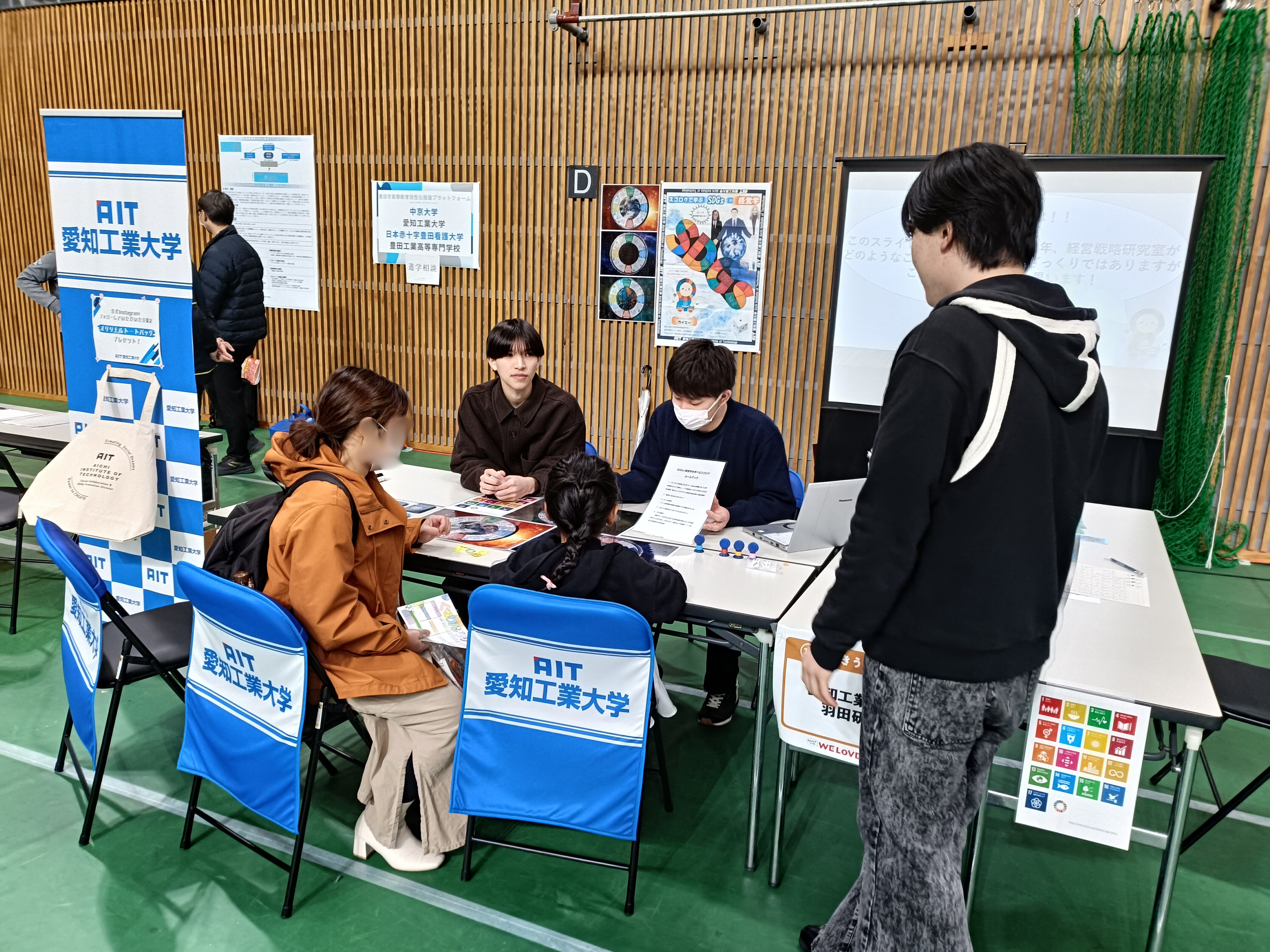 3月16日にスカイホール豊田で開催された「第8回WE LOVE とよたフェスタ」において、経営学科経営戦略研究室(羽田裕経営学部教授)が企画・開発を進める「SDGsボードゲーム」の試作品を来場者に体験して頂きました。経営学科3年の浜井康晴さん、谷口真登さん、濱松孝樹さんが研究室を代表して参加しました。小学生をターゲットとし、対戦的要素などを盛り込むことによって、楽しくSDGsを学ぶきっかけとなるゲームとなっています。今回、体験して頂いた方々のご意見・ご助言を参考にブラッシュアップを行い、最終的には商品化へとつなげていく予定です。