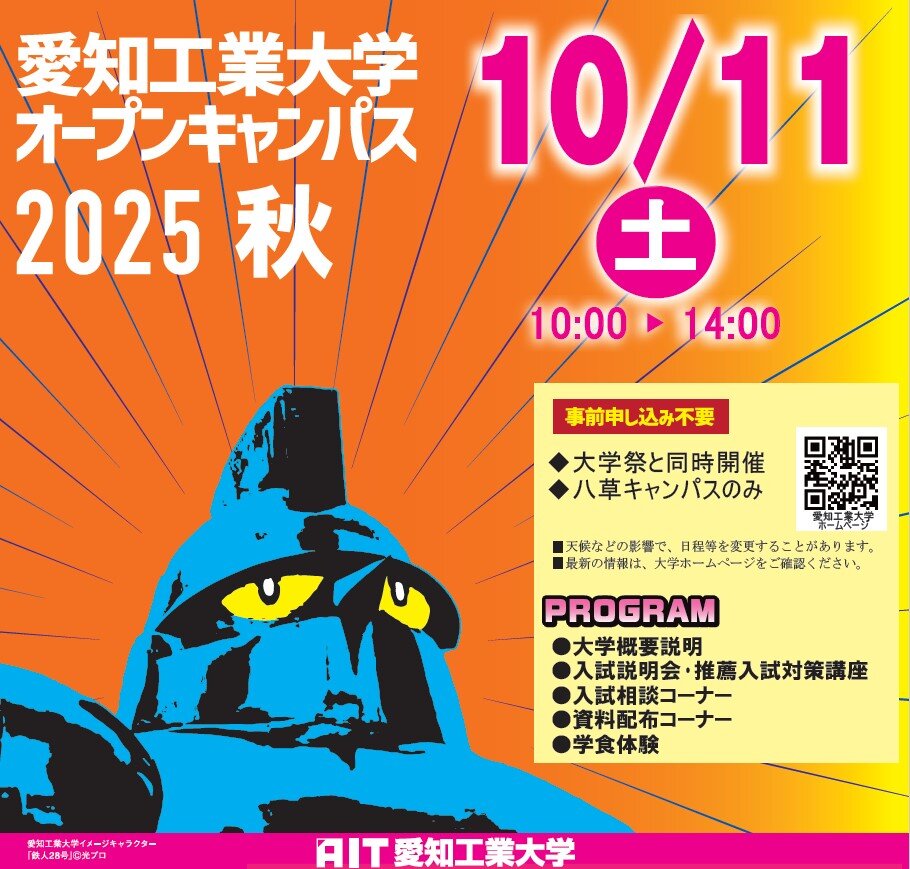 2025年10月11日(土)八草キャンパスのみ ※大学祭同時開催